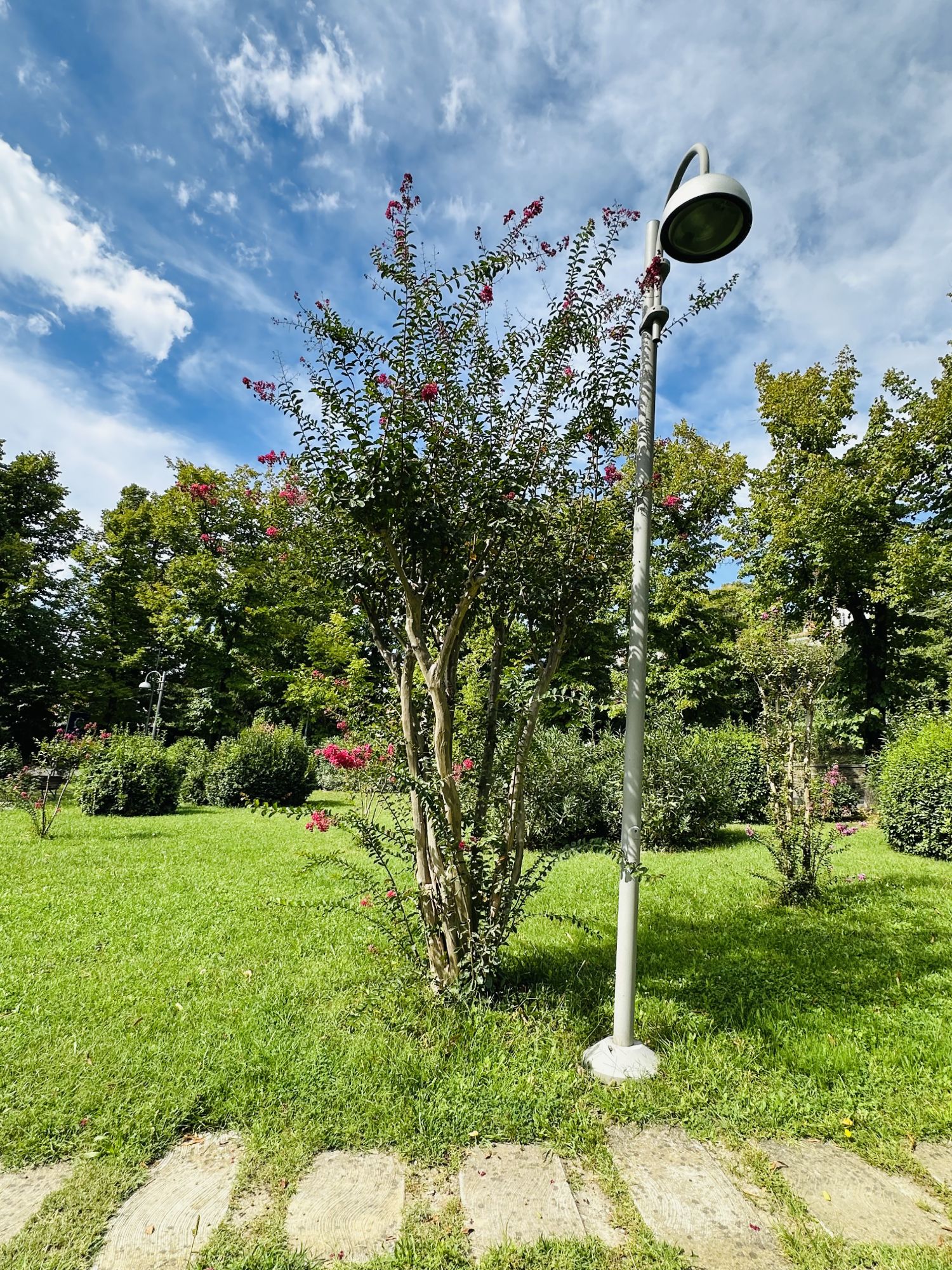 Eksotično drevo s pisanim, dolgo trajajočim poletnim cvetenjem v rožnatih, vijoličnih ali belih odtenkih. Ima