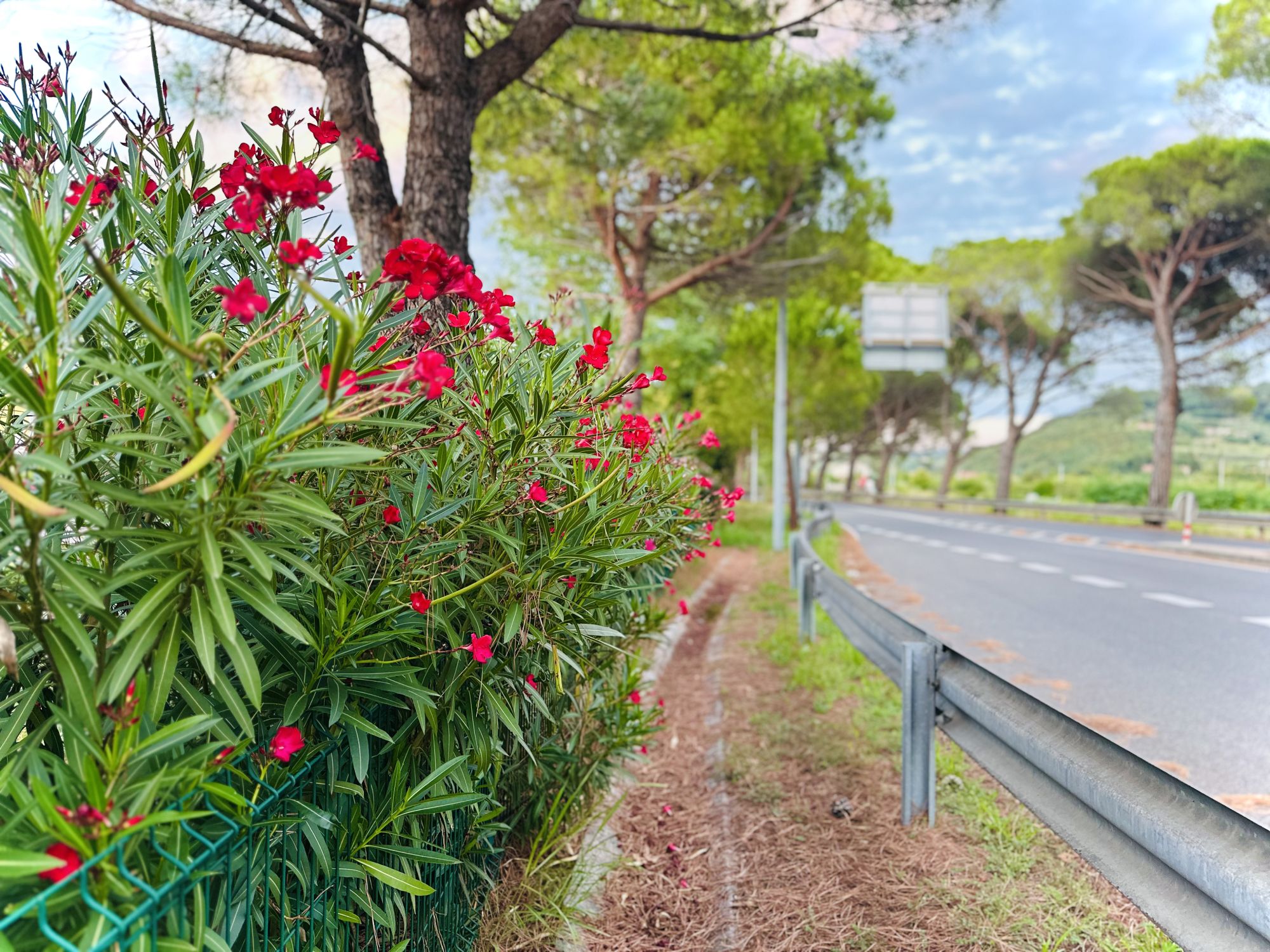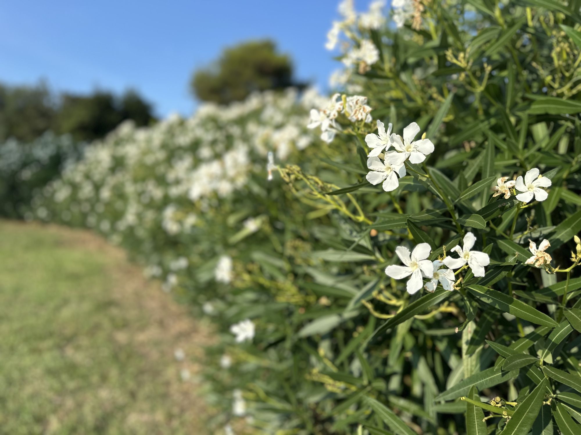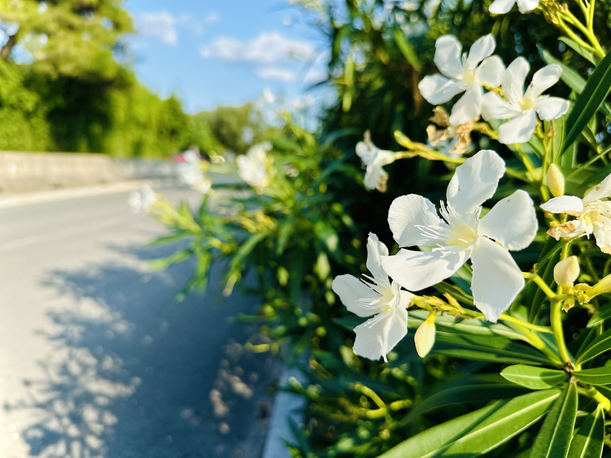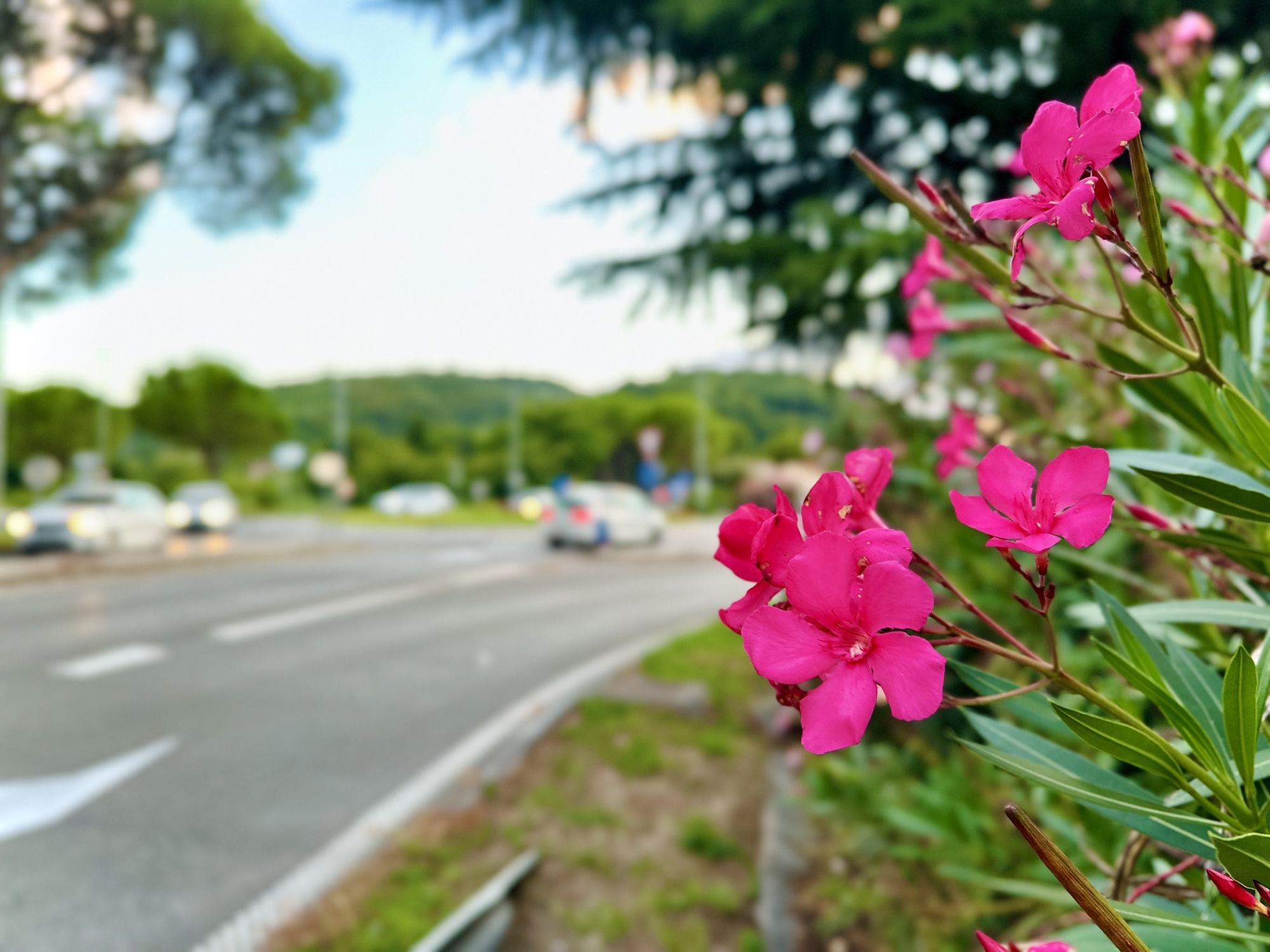 Oleander je eden najbolj priljubljenih sredozemskih okrasnih grmov. Njegovi živobarvni cvetovi krasijo rastlino