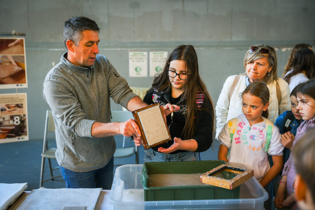 Gneča je bila tudi na delavnici ročne izdelave papirja iz invazivnih rastlin. V sodelovanju z laboratorijem Paplab so se mladi preizkusili v izdelavi papirja iz vlaken japonskega dresnika ter na zabaven način spoznali principe krožnega gospodarstva. Nekaj novega so se ob tem naučile tudi učiteljice, vsak pa je domov odnesel svoj unikatni list papirja – iz rastline, ki sicer velja za nadlogo.