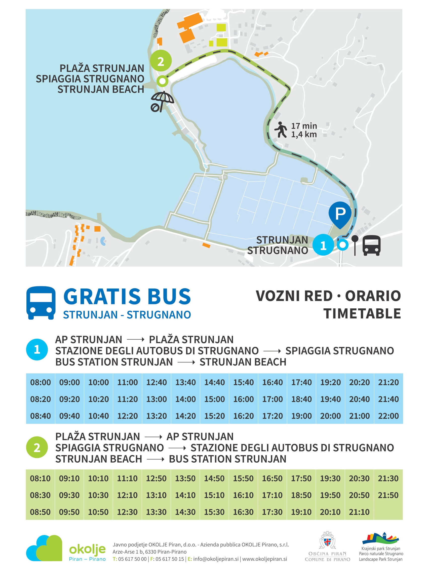 Javno podjetje OKOLJE Piran nadaljuje z uveljavljeno prakso zagotavljanja boljše dostopnosti do morja. Od torka, 1. julija, bo v Strunjanu ponovno na voljo brezplačni poletni avtobus, ki bo povezoval glavno avtobusno postajo Strunjan in kopališče Krka.